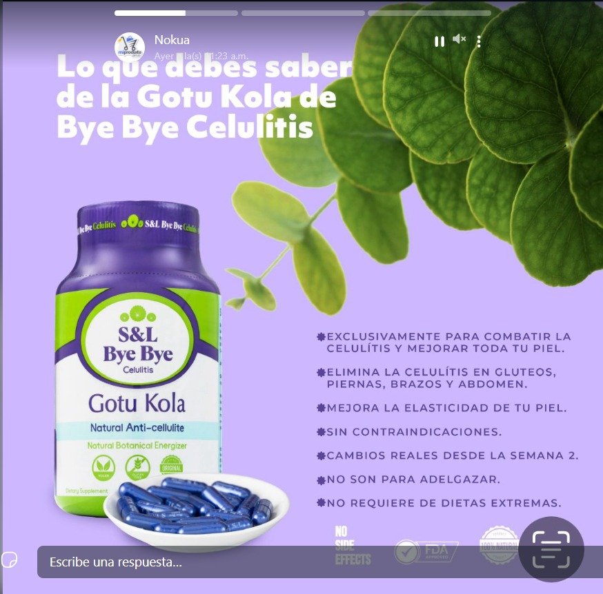 Es un producto americano, 100% natural para combatir la celulitis a base de gotu kola.